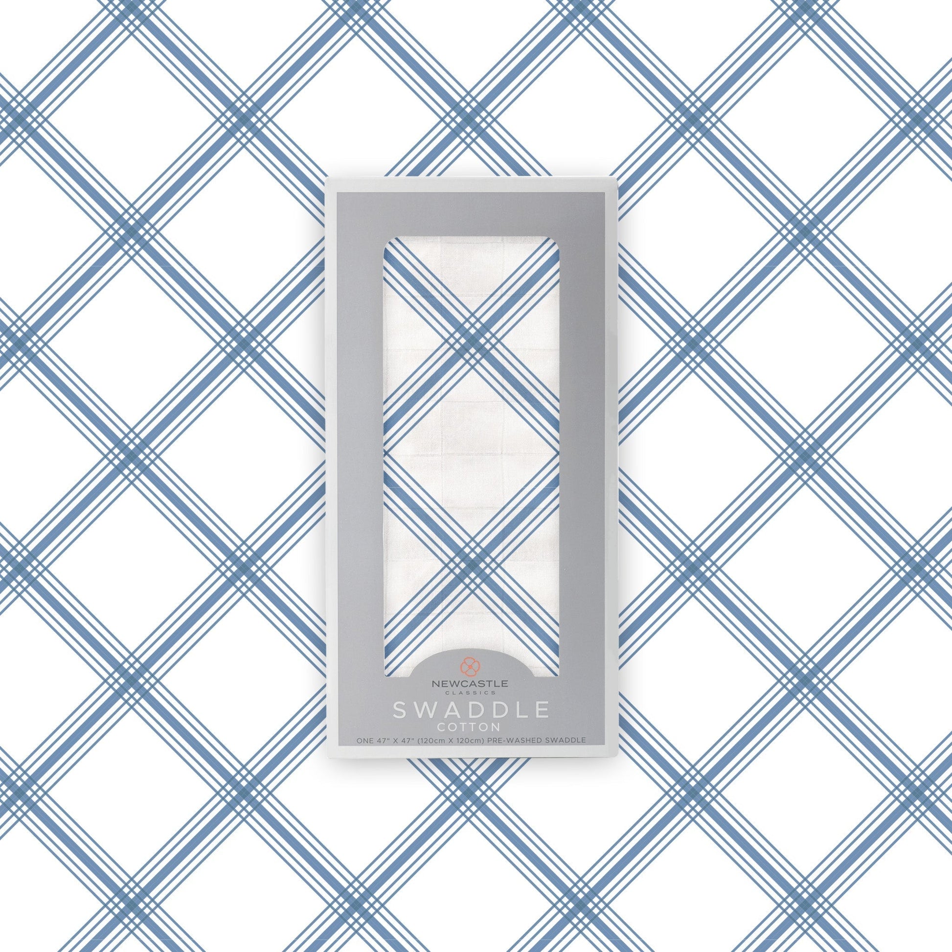 Newcastle Classic Blue Buffalo Check Plaid 100% Natural Cotton Muslin Swaddle