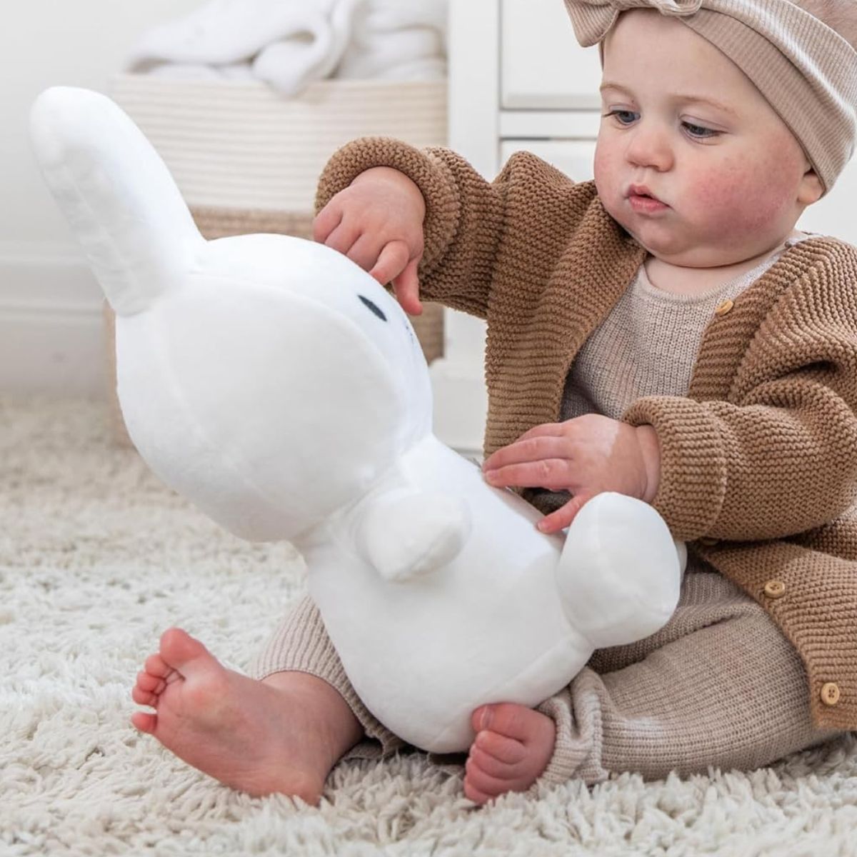 - Miffy the rabbit is a classic storybook character who promotes positive values and repsect for the world. Our large Miffy stuffed animal will capture the imagination and inspire hours of playtime fun. Resilient polyester fiber fill within ensures she'll stand up to a lifetime of play.