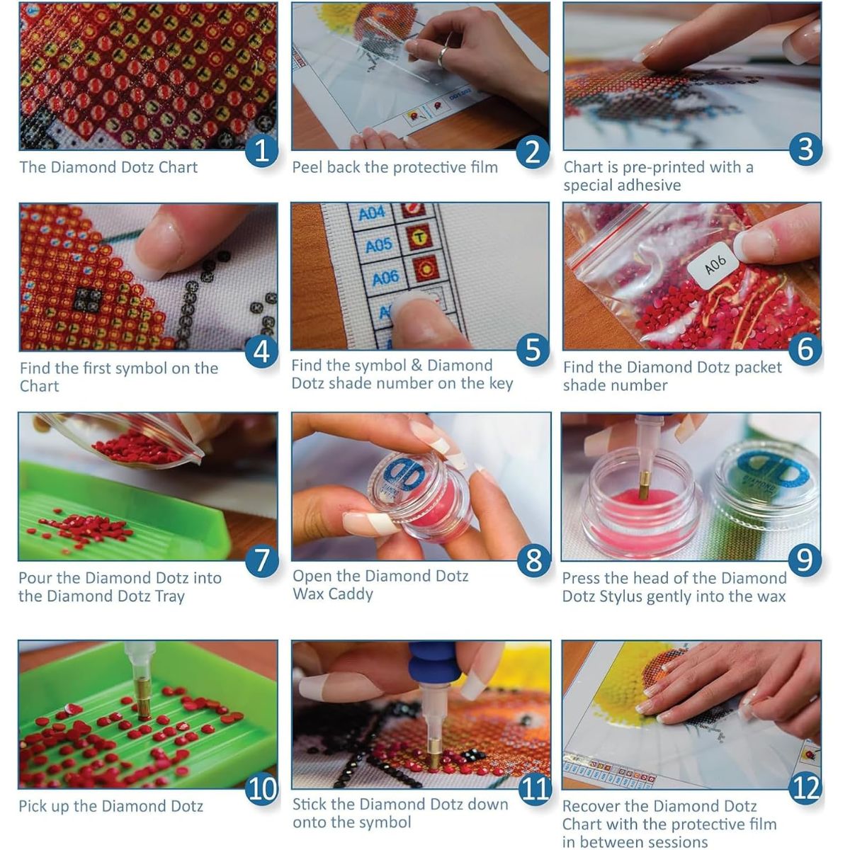 This Diamond Painting Kit comes with everything you need to complete this unique artwork. DIAMOND DOTZ is an amazing new craft where stunning designs are created with diamond like facets. From a broad range of designs that cater to all tastes, a diamond painting kit will produce a stunning shimmery effect. Quick and easy to do, the end result is an exquisite diamond painting design that is so spectacular that it will have you eager to do more!