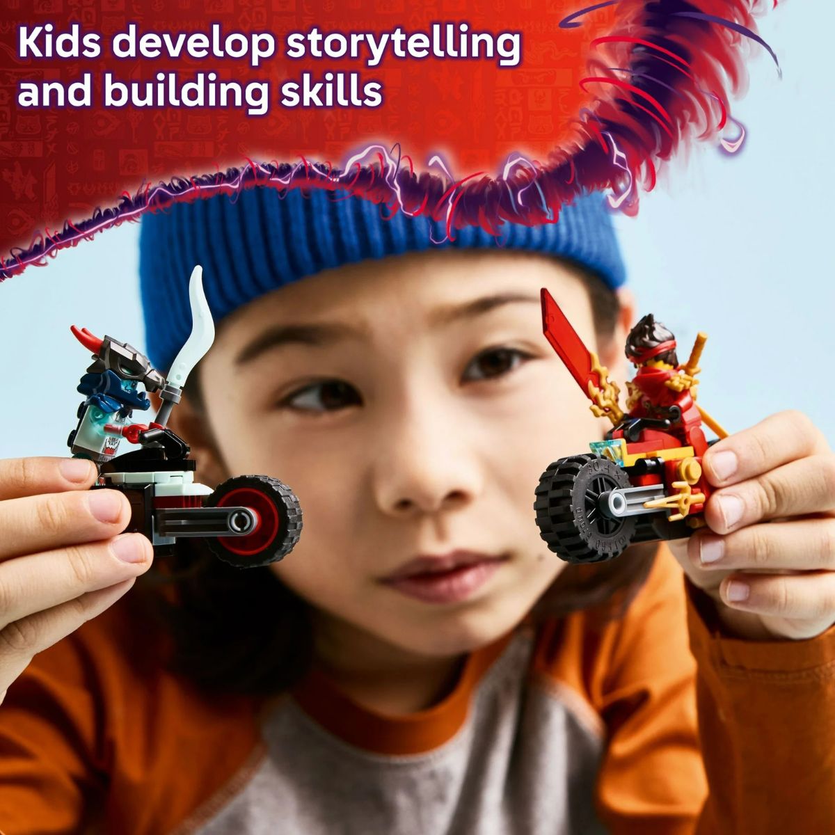 - The LEGO® NINJAGO Kai's Motorcycle Speed Race (71838) lets children 6 years old and up command Kai's chase against the Spectral Dragonian Scout from NINJAGO Dragons Rising Season 3