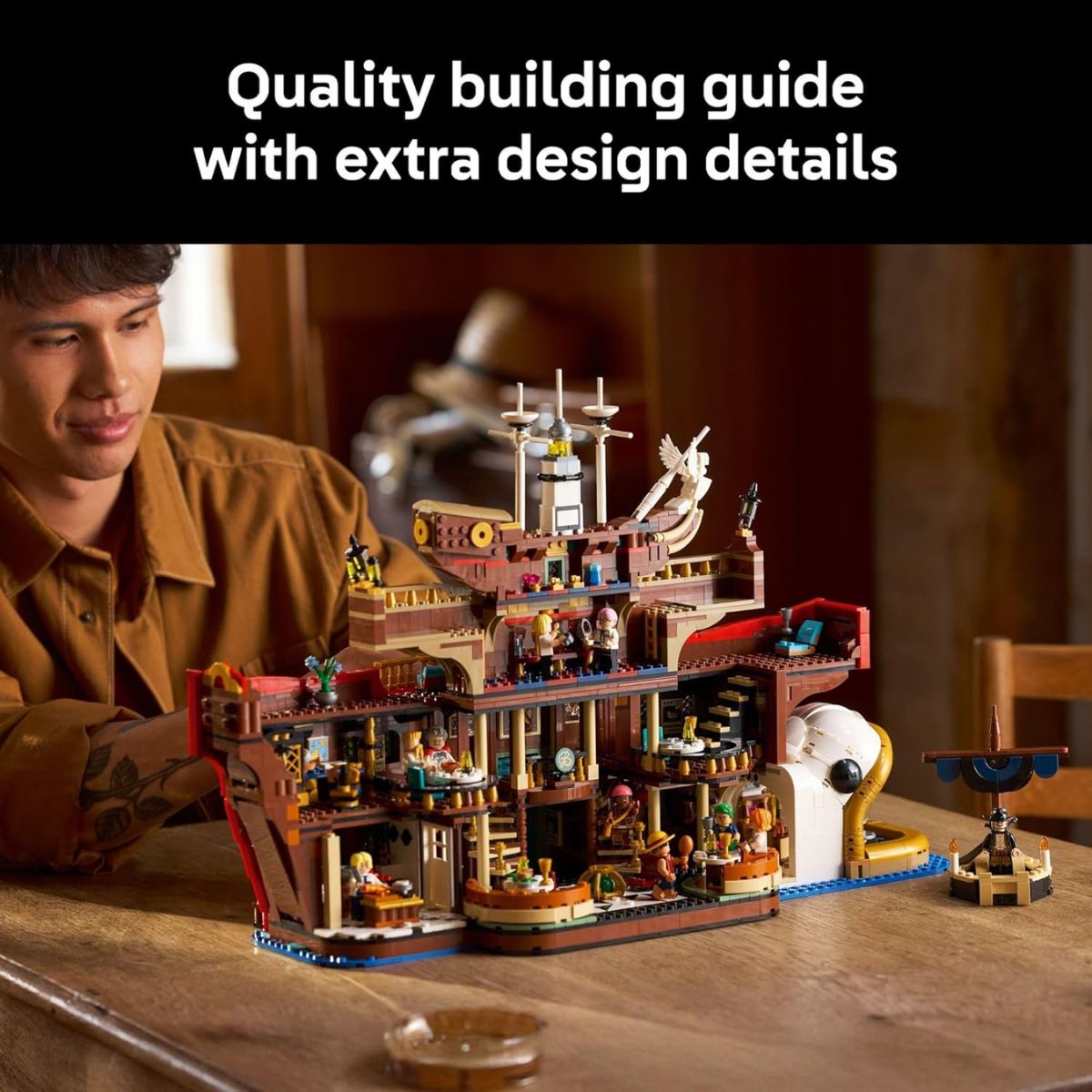 Step into the world of the Baratie, where pirate tales and delicious adventures come alive! This fantastic LEGO® ONE PIECE set lets adult fans build the famous floating restaurant where Sanji’s journey with the Straw Hat crew took off. Dive into the East Blue saga by assembling the ship-shaped eatery, complete with its unique fish figurehead and detailed interiors. Relive key scenes from the Netflix series—from the lively kitchen where Chef Zeff taught Sanji his culinary secrets to the elegant dining rooms where pirates and Marines share meals. The set features ten detailed minifigures, including Luffy, Zoro, Nami, Usopp, Sanji, Zeff, Vice Admiral Garp, Helmeppo, Koby, and the fierce “Hawk Eyes” Mihawk with his boat. Accessories like “Wanted” posters, food items, and a transponder snail add extra fun. With 3,402 pieces and digital 3D instructions via the LEGO® Builder app, this set offers a playful and rewarding build for ONE PIECE fans and collectors alike.