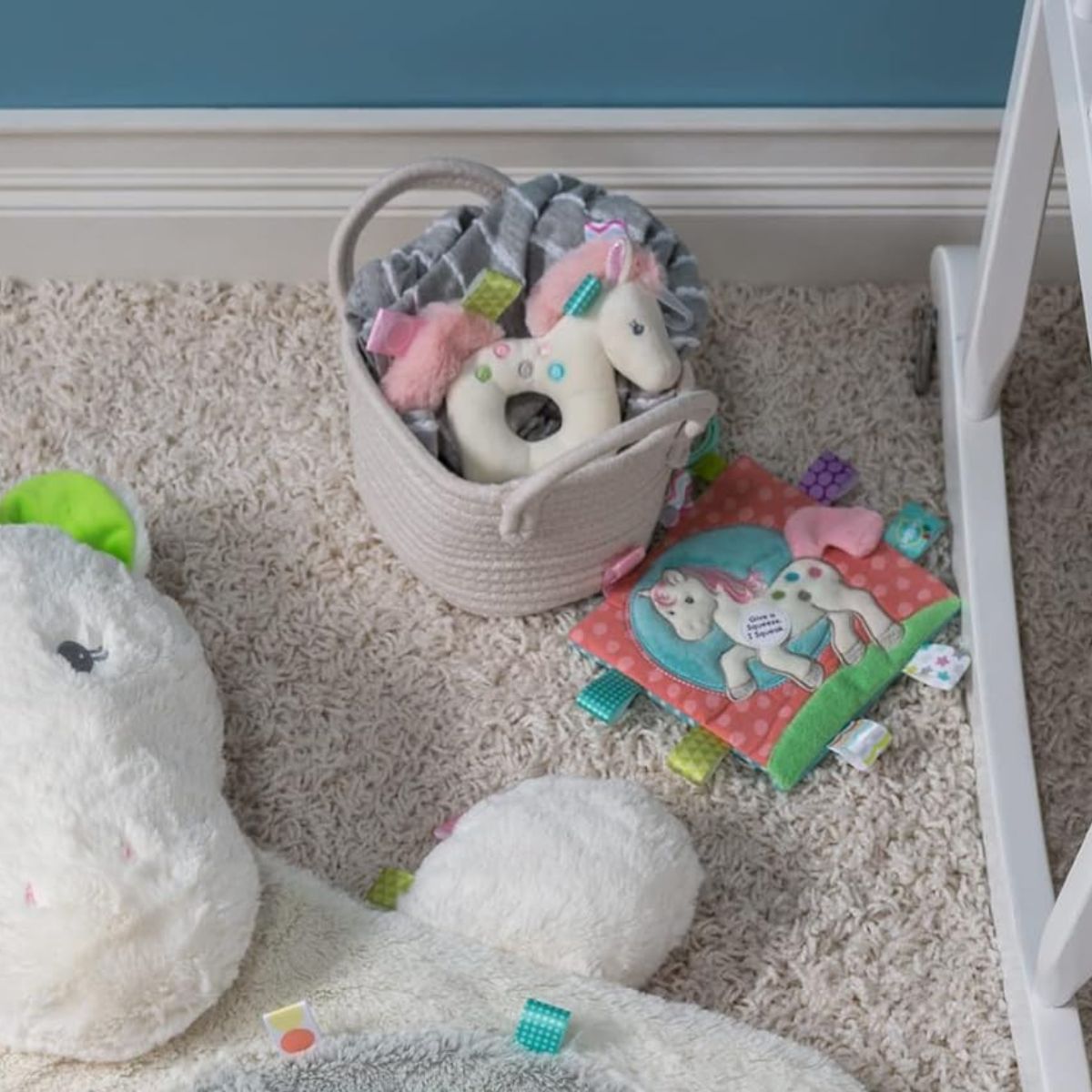 - Decorated with soft, soothing satin loop tags that are perfect for tiny hands to explore and enjoy!