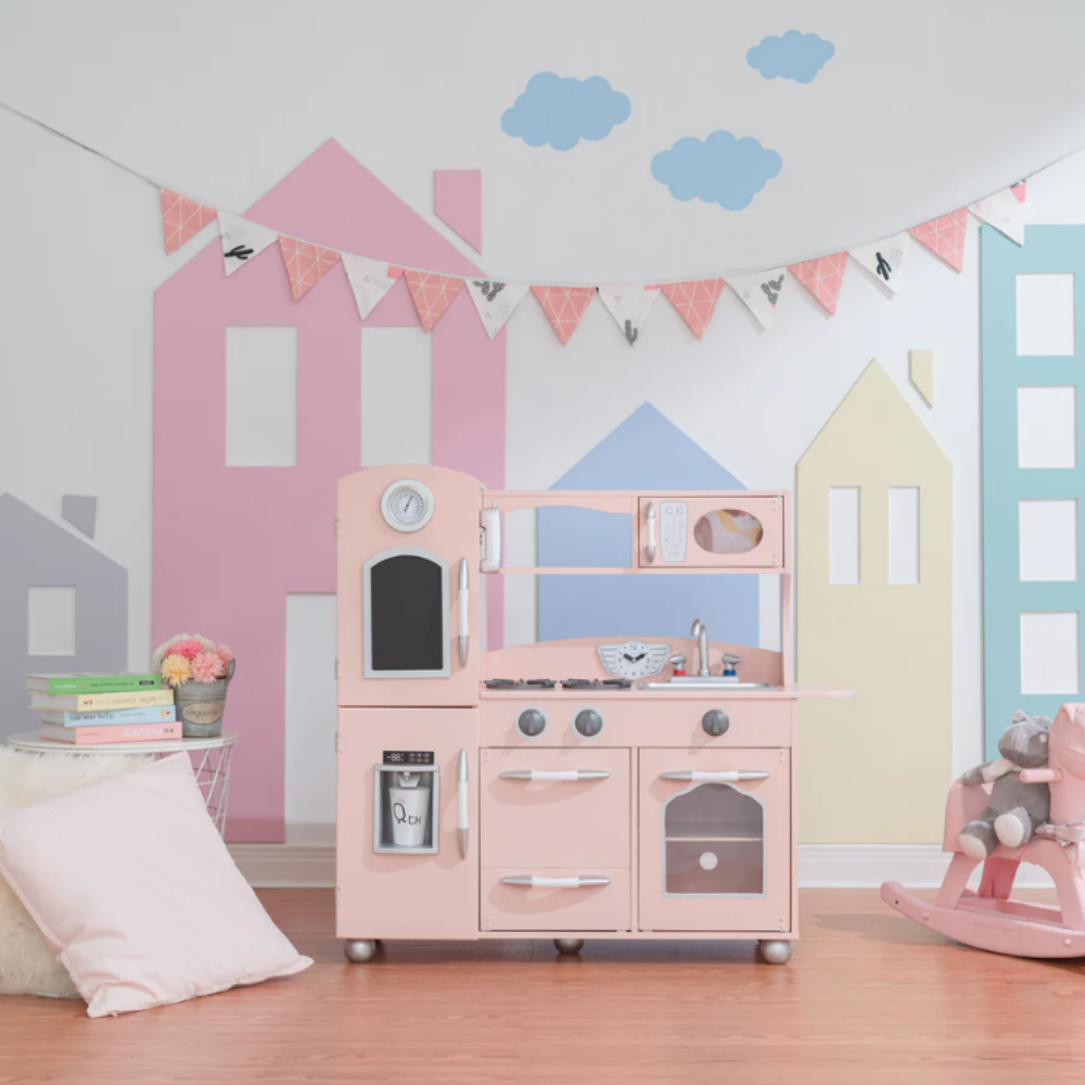 Your little chef will love cooking in the Teamson Kids Westchester Pink Retro Kitchen. Kids and toddlers will love pretending to use the refrigerator, microwave, stove, oven, and sink. The kitchen's durable design and moving parts will keep your child active and entertained. Constructed from MDF longevity, designed for children ages 3 & up. Teamson is a global lifestyle home designs brand bringing joy into every home through beautiful, quality pieces made for stylishly comfortable everyday living. Our Teamson Kids brands give flight to fun, discovery and learning through beautifully crafted, safe, and trend-right furniture pieces and toys for kids with a spirit of curiosity and adventure.